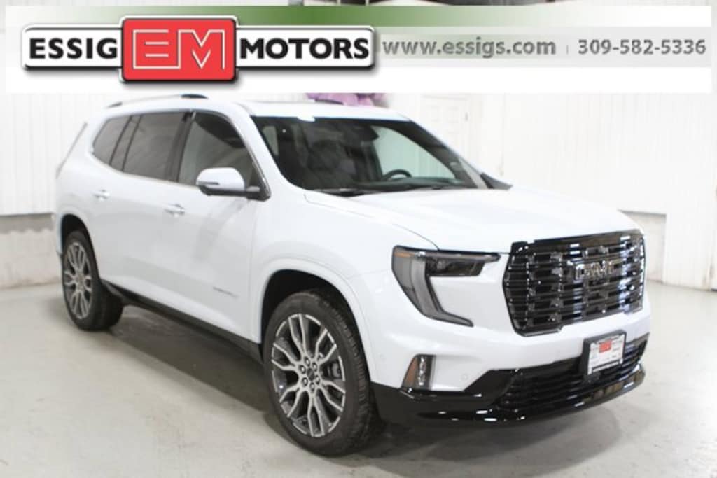 2026 GMC Acadia Denali 2.5L DOHC, ABS brakes, Active Cruise Control, Alloy wheels, Compass, Electronic Stability Control, Front dual zone A/C, Full Leather Seat Trim, Heated door mirrors, Heated Driver & Front Passenger Seats, Heated front seats, Heated rear seats, Illuminated entry, Low tire pressure warning, Memory Package, Power Liftgate, Power moonroof, Remote keyless entry, Traction control.Located in Aledo Illinois, Essig Motors has been family owned and operated since 1989. Owner Jim Essig's experience in the auto industry began in 1975 working for his father's dealership in Washington, Illinois. We are honored to serve Mercer county, surrounding areas, and our growing online community with new, certified pre-owned, pre-owned, and also new and pre-owned commercial vehicles. Essig Motors offers an exceptional selection of new cars, trucks and SUVs including Chevrolet, GMC, Chrysler, Jeep, Dodge and Ram. Our knowledgeable, friendly sales staff is here to answer your questions and help you find the vehicle that meets your needs today!