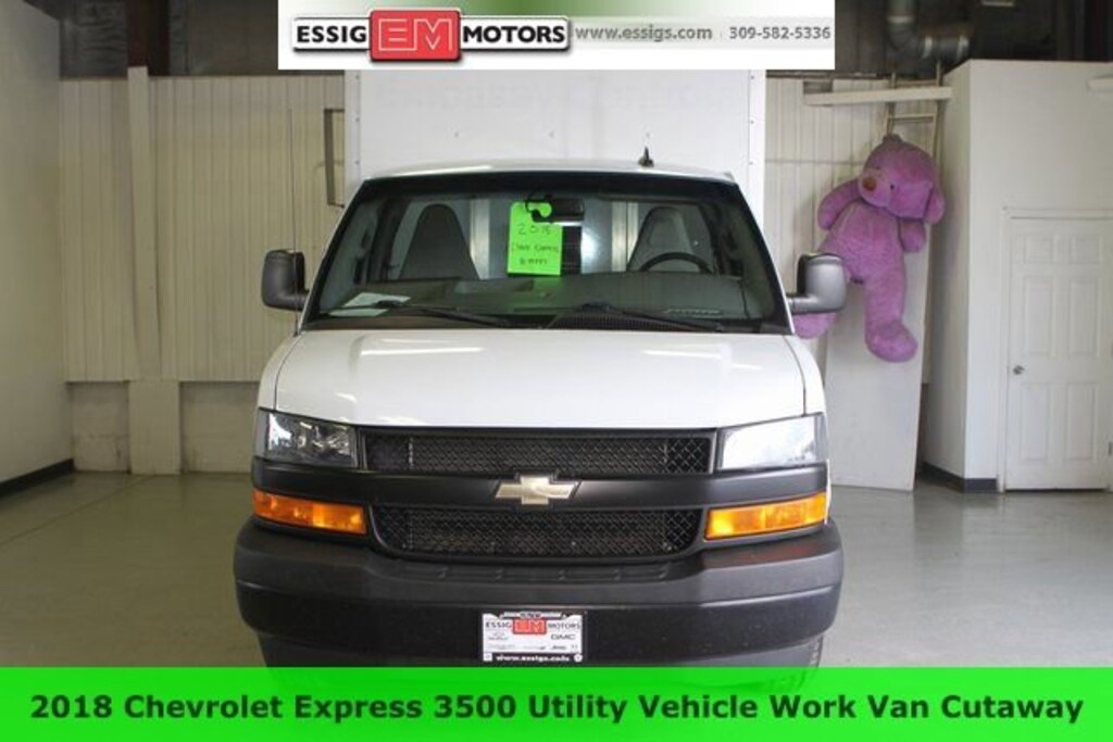 REDUCED PRICE, Chevrolet Express 3500 Work Van Cutaway Summit White ROCKPORT SERVICE PORT UTILITY BODY, 6.0L V8, ABS brakes, Electronic Stability Control, Low tire pressure warning, Rear Vision Camera, Traction control. Odometer is 9273 miles below market average! Located in Aledo Illinois, Essig Motors has been family owned and operated since 1989. Owner Jim Essig's experience in the auto industry began in 1975 working for his father's dealership in Washington, Illinois. We are honored to serve Mercer county, surrounding areas, and our growing online community with new, certified pre-owned, pre-owned, and also new and pre-owned commercial vehicles. Essig Motors offers an exceptional selection of new cars, trucks and SUVs including Chevrolet, GMC, Chrysler, Jeep, Dodge and Ram. Our knowledgeable, friendly sales staff is here to answer your questions and help you find the vehicle that meets your needs today!
