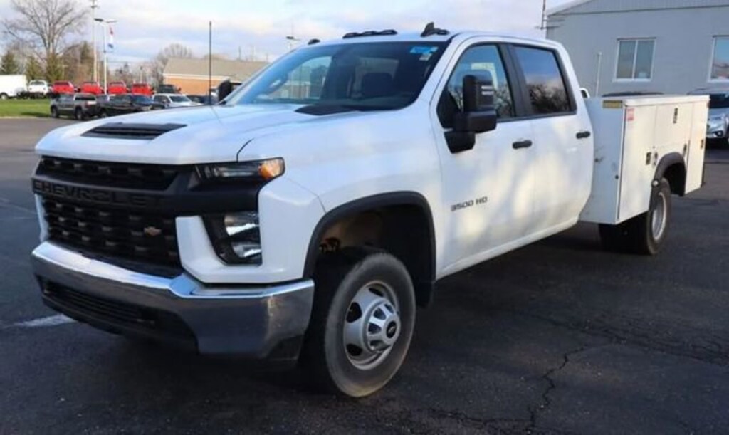 Recent Arrival! 2022 Chevrolet Silverado 3500HD Work Truck 4D Crew Cab 4WD Summit White **ONE OWNER**, **LOW LOW MILES**, **KNAPHEIDE UTILITY BODY READY WORK TRUCK**, 6.6L GAS V8, 6-Speed Automatic, Dual Rear Wheels. Located in Aledo Illinois, Essig Motors has been family owned and operated since 1989. Owner Jim Essig's experience in the auto industry began in 1975 working for his father's dealership in Washington, Illinois. We are honored to serve Mercer county, surrounding areas, and our growing online community with new, certified pre-owned, pre-owned, and also new and pre-owned commercial vehicles. Essig Motors offers an exceptional selection of new cars, trucks and SUVs including Chevrolet, GMC, Chrysler, Jeep, Dodge and Ram. Our knowledgeable, friendly sales staff is here to answer your questions and help you find the vehicle that meets your needs today!