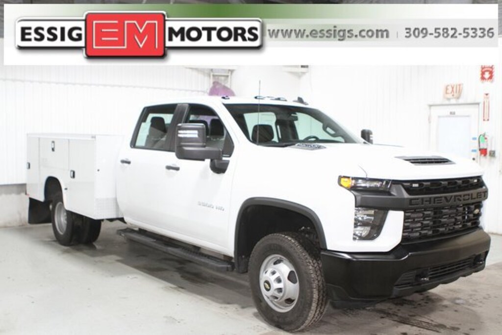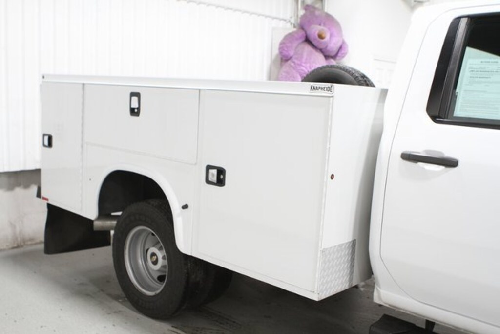 Recent Arrival! 2022 Chevrolet Silverado 3500HD Work Truck 4D Crew Cab 4WD Summit White **ONE OWNER, **LOW LOW MILES, **KNAPHEIDE UTILITY BODY READY WORK TRUCK**, Duramax 6.6L V8 Turbodiesel, 10-Speed Automatic, Dual Rear Wheels.