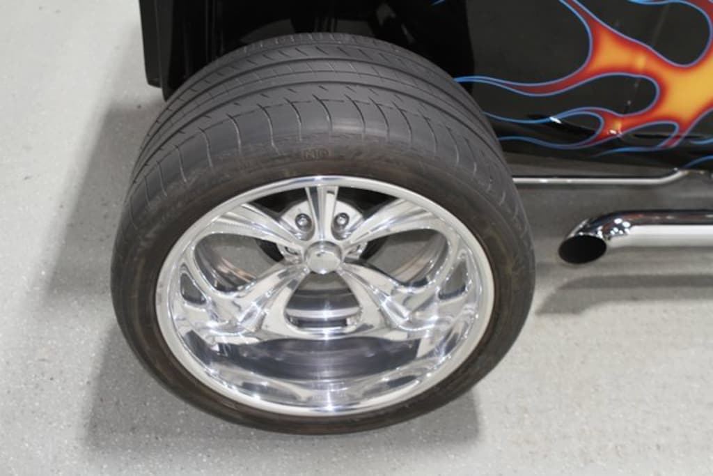Recent Arrival! 1923 Ford Black This custom-made Ford T-bucket uses a 2 3 tubular steel frame with a fiberglass body, and power comes from a 350ci V8 linked to a three-speed automatic and a Ford 8 rear end. The car rides on staggered-diameter Billet Specialties wheels and has a suicide front setup with a tubular axle and discs, while out back are ladder bars, adjustable coilovers, and hydraulic drums. Additional custom details include a flame job, a yellow grille shell and headlight buckets, headers and side pipes, two-tone upholstery, and modern gauges.. The car rides on a modified suspension featuring a suicide front setup with a tubular drop axle and discs, while out back are ladder bars, adjustable coilovers, and hydraulic drums. The Billet Specialties wheels measure 18 up front and 20 out back, and they were mounted along with the staggered Michelin rubber in 2024. The Chevrolet 350ci V8 was updated in 2014 with fabricated valve covers, and a chrome oil pan was installed in 2025. The Edelbrock carburetor is mounted on a matching Performer EPS aluminum manifold, and headers are linked to side pipes with baffles. Mallory ignition was also used. Located in Aledo Illinois, Essig Motors has been family owned and operated since 1989. Owner Jim Essig's experience in the auto industry began in 1975 working for his father's dealership in Washington, Illinois. We are honored to serve Mercer county, surrounding areas, and our growing online community with new, certified pre-owned, pre-owned, and also new and pre-owned commercial vehicles. Essig Motors offers an exceptional selection of new cars, trucks and SUVs including Chevrolet, GMC, Chrysler, Jeep, Dodge and Ram. Our knowledgeable, friendly sales staff is here to answer your questions and help you find the vehicle that meets your needs today!