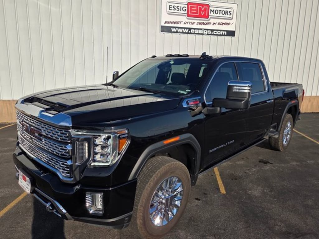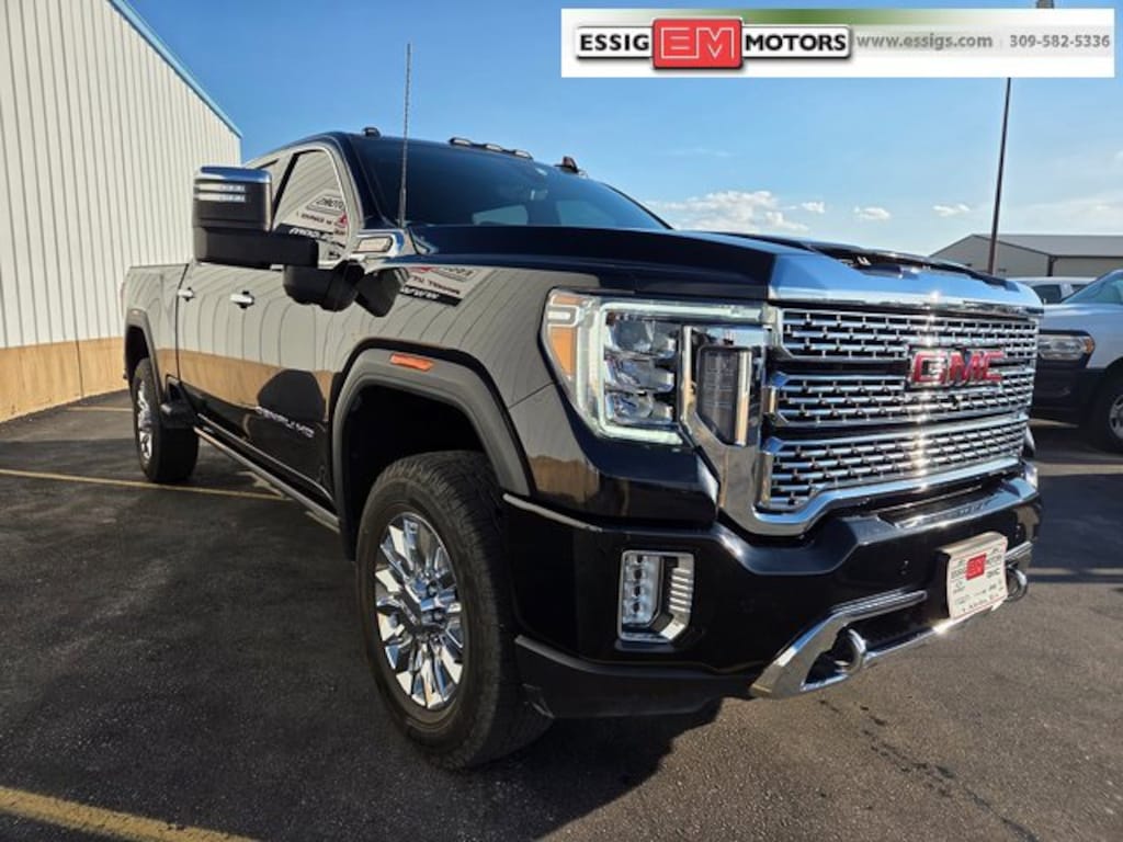 2021 GMC Sierra 2500HD Denali 4D Crew Cab 4WD Ebony Twilight Metallic **LOCAL TRADE, Duramax 6.6L V8 Turbodiesel, 10-Speed Automatic, Denali Ultimate Package, Inside Rearview Auto-Dimming Rear Camera Mirror, Multicolor 15 Diagonal Head-Up Display, Power Sunroof, Technology Package. Priced below KBB Fair Purchase Price! Located in Aledo Illinois, Essig Motors has been family owned and operated since 1989. Owner Jim Essig's experience in the auto industry began in 1975 working for his father's dealership in Washington, Illinois. We are honored to serve Mercer county, surrounding areas, and our growing online community with new, certified pre-owned, pre-owned, and also new and pre-owned commercial vehicles. Essig Motors offers an exceptional selection of new cars, trucks and SUVs including Chevrolet, GMC, Chrysler, Jeep, Dodge and Ram. Our knowledgeable, friendly sales staff is here to answer your questions and help you find the vehicle that meets your needs today!